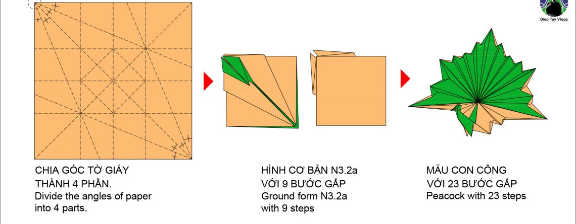 12 - Mẫu gấp Con công - Paper Folding Art: Peacock