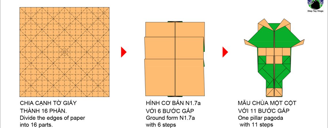 46 - Mẫu gấp Biểu tượng Chùa Một Cột - Paper Folding Art: One Pillar Pagoda Symbol