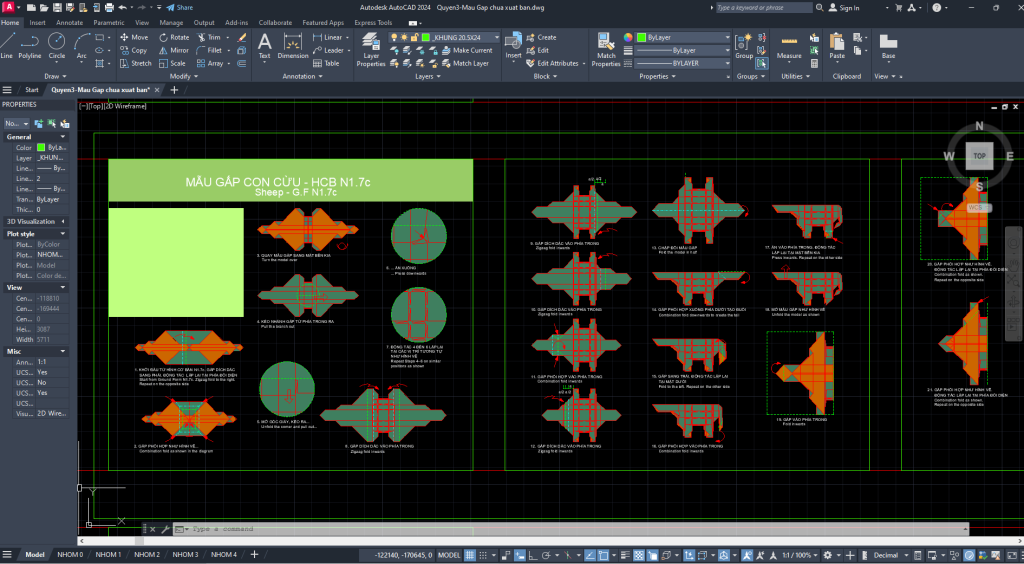 Màn hình trình bày các bước gấp của Mẫu con cừu. Cơ sở cho nhà tạo mẫu điều chỉnh Mẫu gấp giấy.