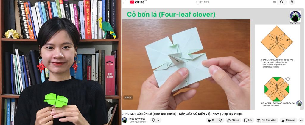 Các video giới thiệu mẫu gấp trên Kênh Diep Tay Vlogs đều hướng tới người tham gia gấp giấy.