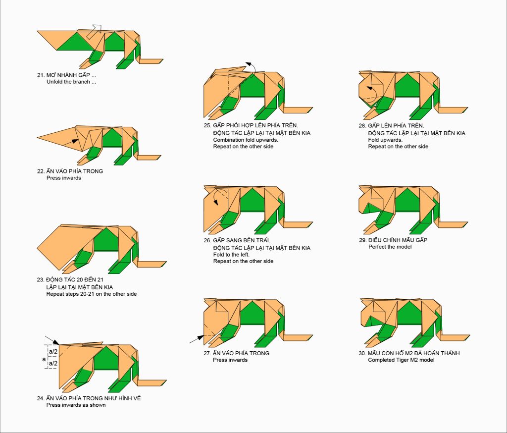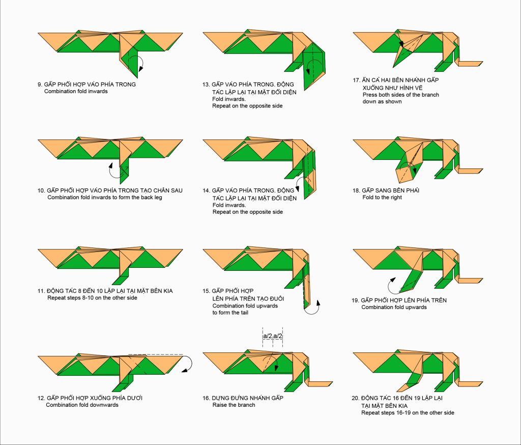 Sắp xếp các bước gấp theo trình tự hợp lý, logic: Phần chân sau, đuôi, chân trước và đầu. Mỗi mẫu gấp có trình tự gấp khác nhau. Qua đó, tạo điều kiện thuận lợi cho người gấp theo mẫu.