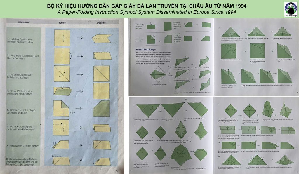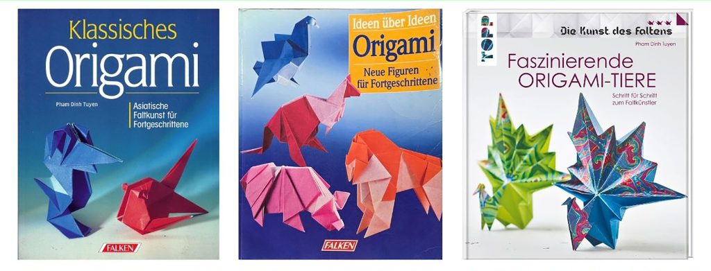 Bộ ký hiệu hướng dẫn gấp giấy đã lan truyền tại Châu Âu từ năm 1994; Ảnh bên trái: Tại cuốn sách Klassisches Origami (P. D. Tuyen, NXB Falken, năm 1994); Ảnh bên phải: Tại cuốn sách Faszinierende Origami-Tiere (P. D. Tuyen NXB TOPP, năm 2008) và tái bản nhiều lần.