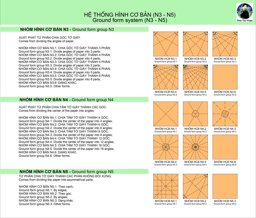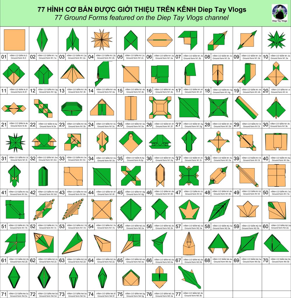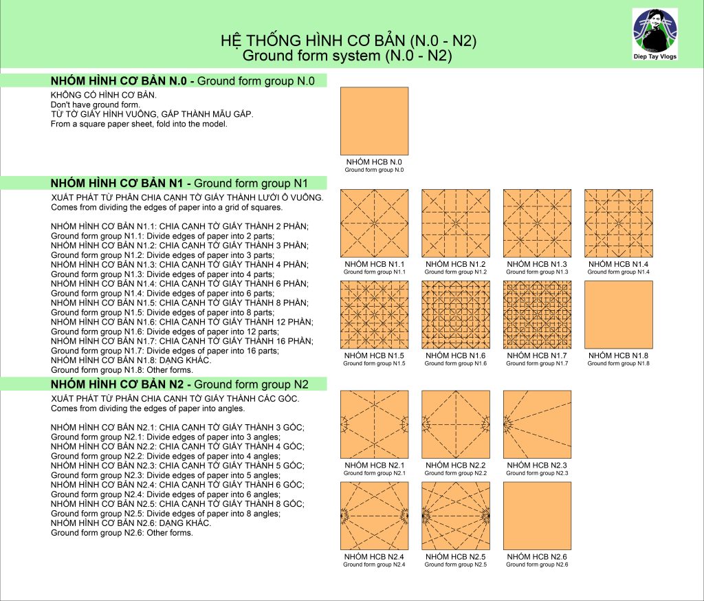 Hệ thống hình cơ bản có thể coi như hệ thống kết cấu hạ tầng và tài nguyên của Nghệ thuật Gấp giấy. Kênh Diep Tay Vlogs và trang web dieptay.com không chỉ giới thiệu mẫu gấp, mà luôn chú trọng giới thiệu Hình cơ bản.