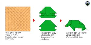 80 – Mẫu gấp Con lợn rừng  – Paper Folding Art: Wild boar Trong Nghệ ...
