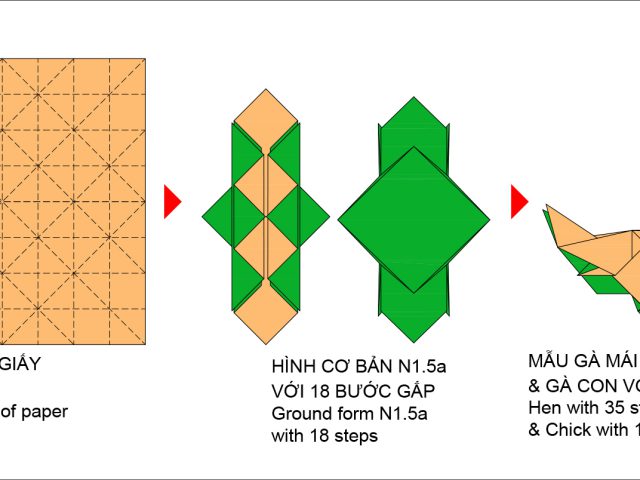 49 - MẪU GẤP CON GÀ MÁI VÀ GÀ CON - PAPER FOLDING ART: HEN AND CHICK