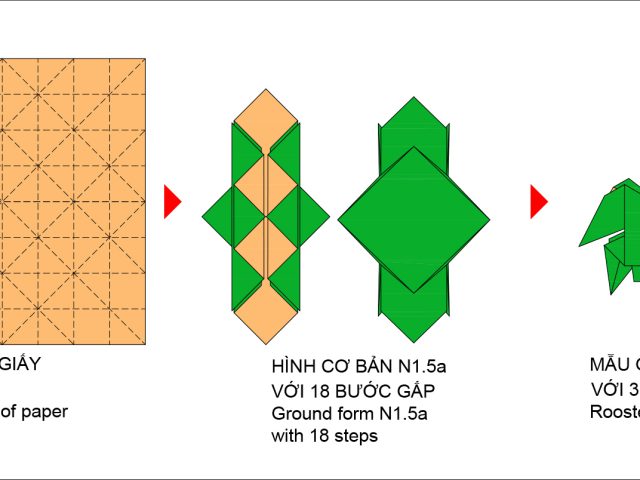 48 - MẪU GẤP CON GÀ TRỐNG - PAPER FOLDING ART: ROOSTER