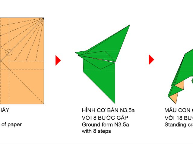 44 - MẪU GẤP CON CÒ ĐỨNG - PAPER FOLDING ART: STANDING CRANE