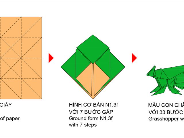24 - MẪU GẤP CON CHÂU CHẤU - PAPER FOLDING ART: GRASSHOPPER