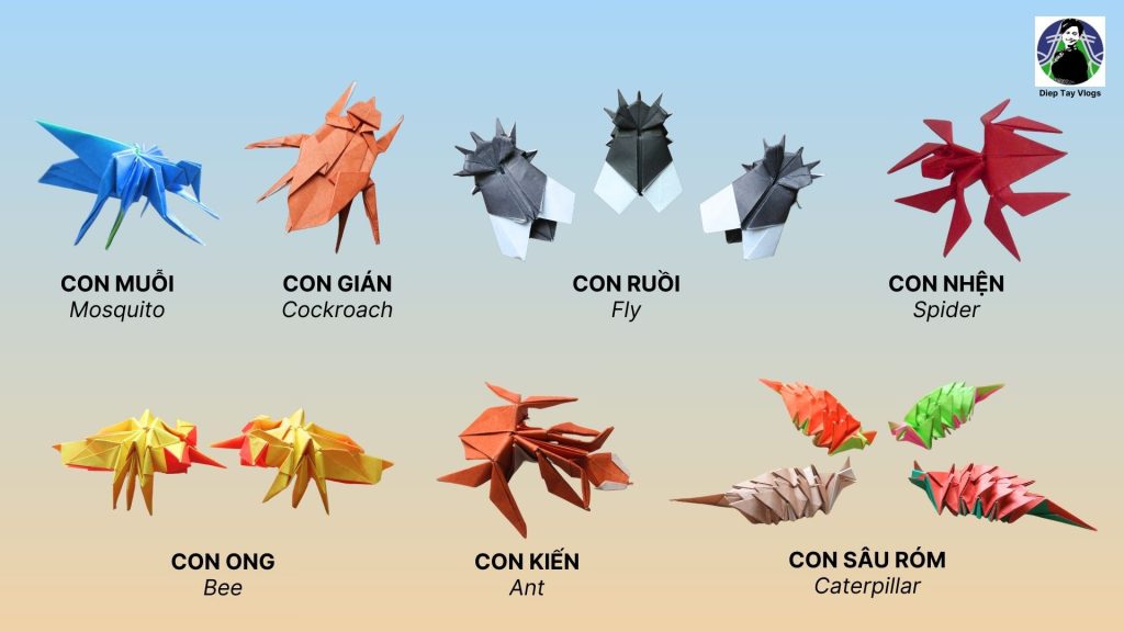 + Mẫu gấp Con vật nhỏ bé: Con muỗi, con ruồi, con kiến, con gián,…