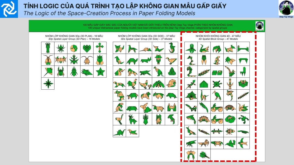 Phân nhóm 100 Mẫu gấp theo dạng không gian 3Dp, 3Ds và 4D