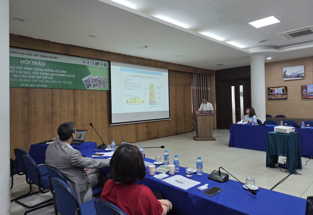 Ngày 16/7/2025 tại Trường Đại học Xây dựng Hà Nội đã tổ chức Hội thảo: “Ứng dụng Mô hình Cộng đồng hộ dân tổ chức liên kết cải tạo, xây dựng lại Chung cư cũ tại các Khu tập thể cũ; Ví dụ minh họa tại Khu tập thể Kim Liên, Hà Nội”. Đơn vị tổ chức Hội thảo: Công ty NUCETECH và Khoa Kiến trúc & Quy hoạch Trường Đại học Xây dựng Hà Nội. Tham dự Hội thảo có các nhà khoa học, chuyên gia trong lĩnh vực xây dựng, quy hoạch, kiến trúc, một số nhà đầu tư và nhiều tổ trưởng cộng đồng hộ dân tại Khu tập thể Kim Liên.
