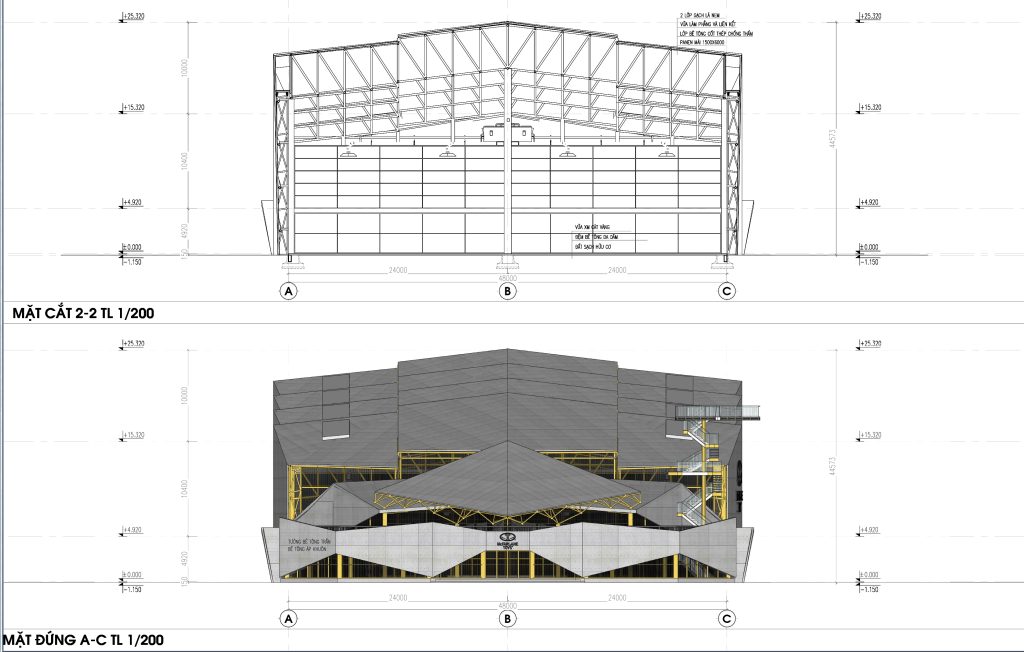 Ảnh: Mặt cắt dọc và mặt đứng công trình